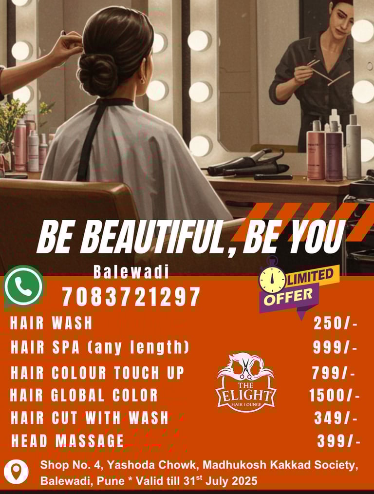 Experience premium hair and beauty services at The Elight Hair Lounge in Balewadi, Pune.
